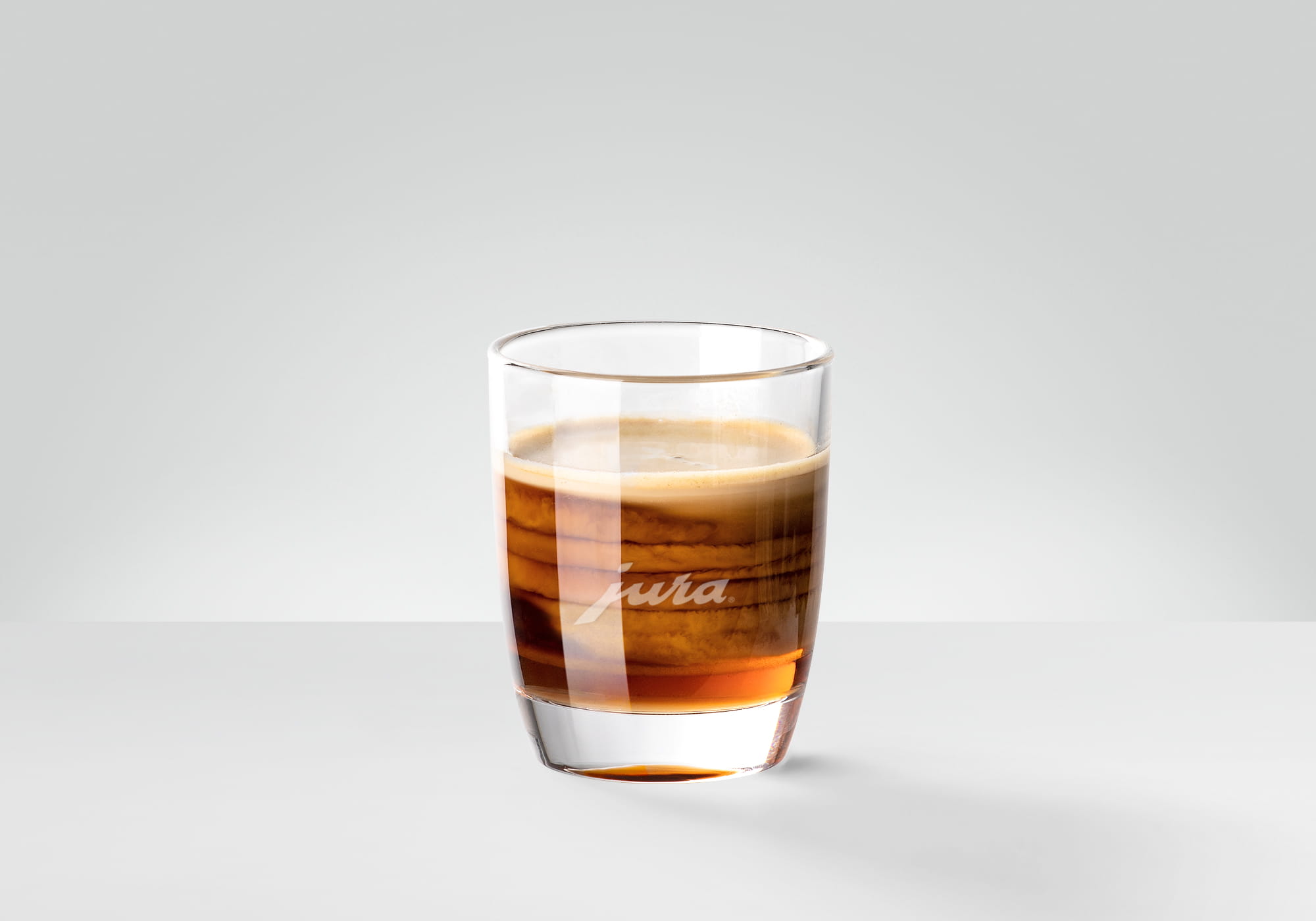 • Bereiten Sie den Espresso direkt ins Espressoglas zu und füllen Sie es mit Kaffeesahne auf.